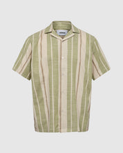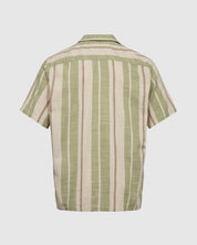 A short-sleeved short crafted from 100% cotton for a nice quality. The shirt has a relaxed fit andfeatures a label collar and a button closure. It is detailed with a two-toned striped pattern.