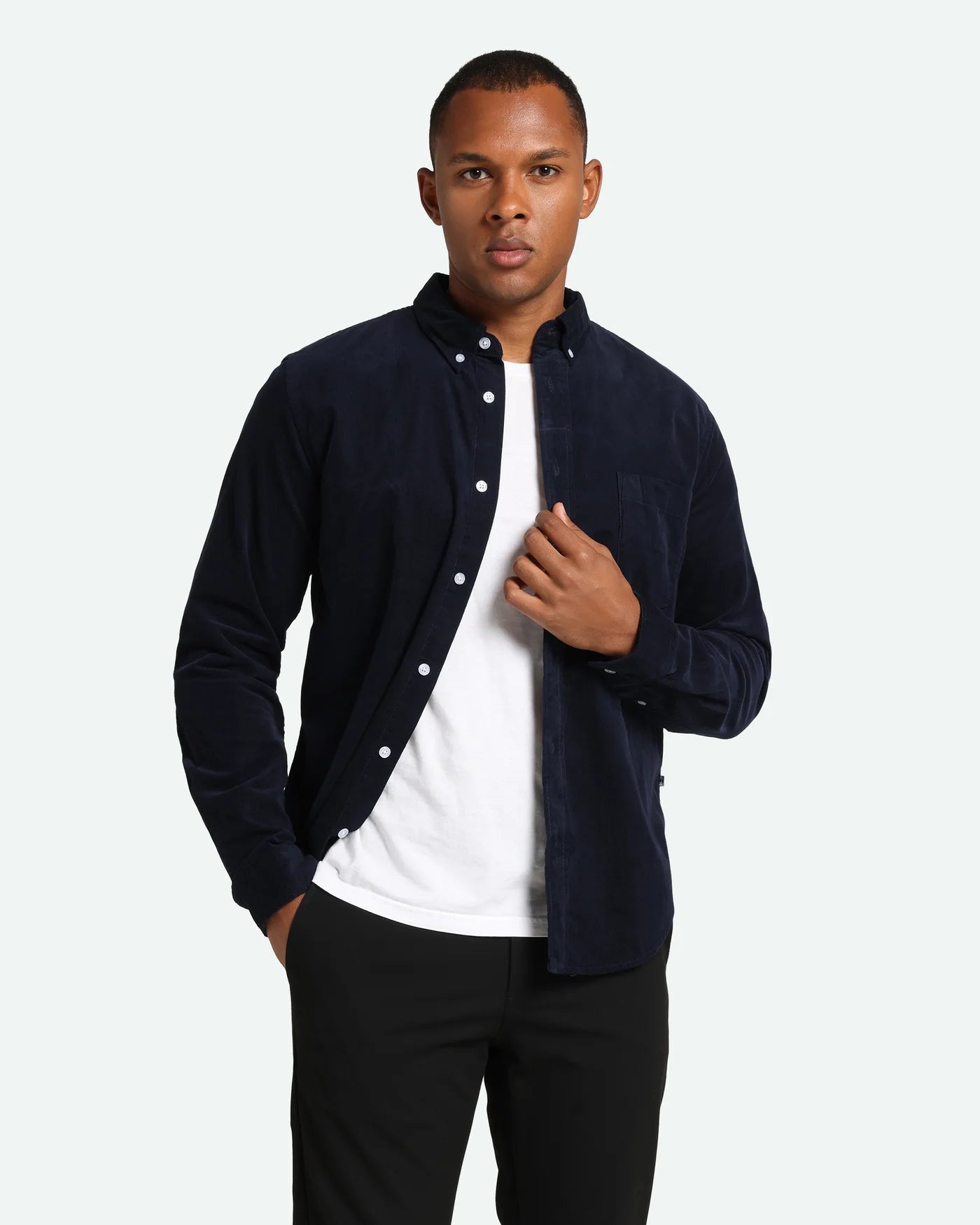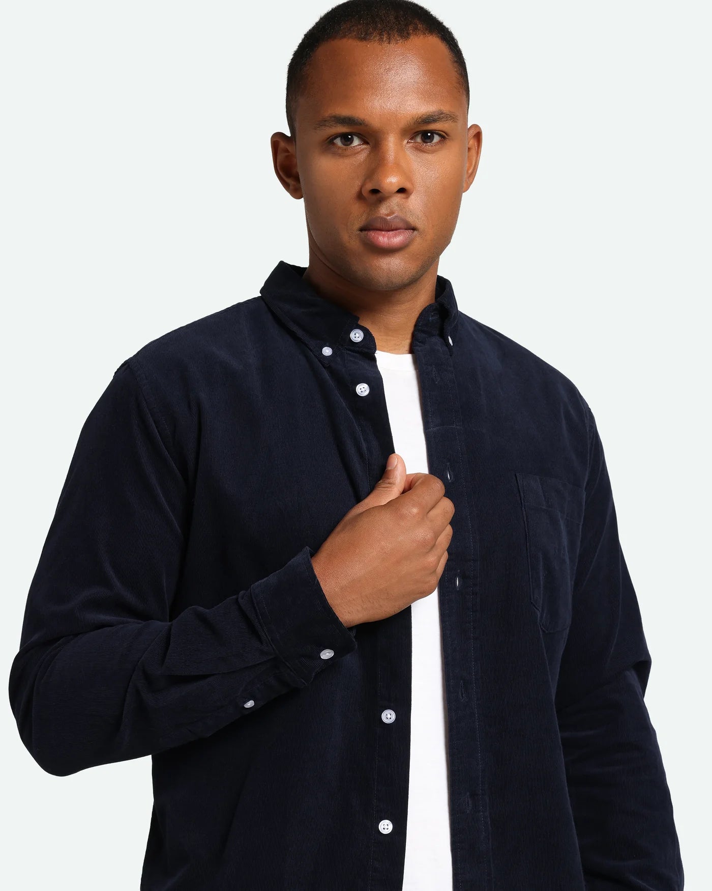A long-sleeved corduroy shirt made from 100% organic cotton for a soft and comfortable quality. The shirt has a regular fit and is designed with a collar, a single breast pocket and button closure.