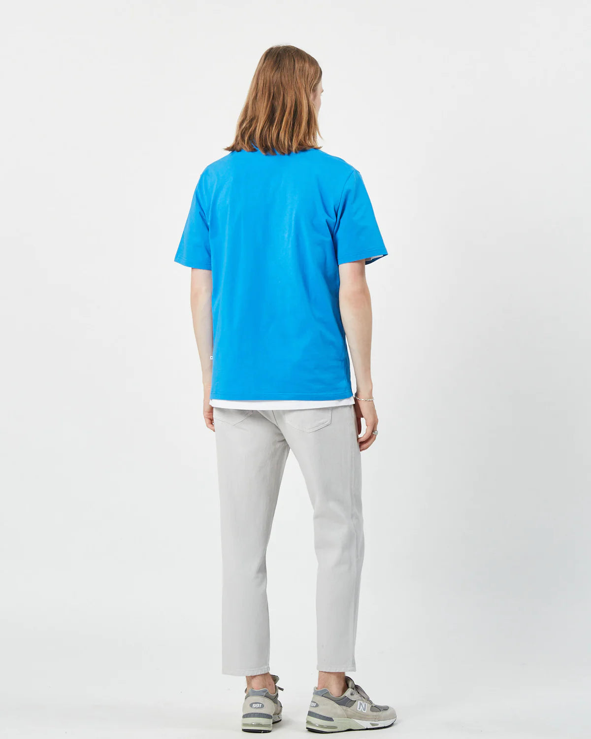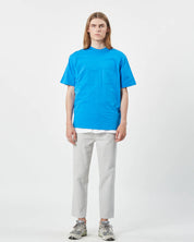 A short sleeved t-shirt crafted from 100% organic cotton for a comfortable quality. The shirt has a regular fit and features dropped shoulders, a chest pocket and a crew neck with a wide rib edge. The model is 190 cm tall and wears a size large.