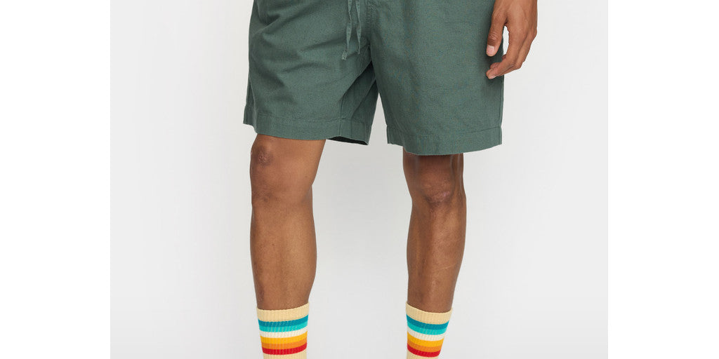 A short sleeved shirt crafted from organic cotton and linen for a light and comfortable quality. The shirt has a slightly loose fit and features collar and button closure. The model is 182 cm tall and wears a size large.