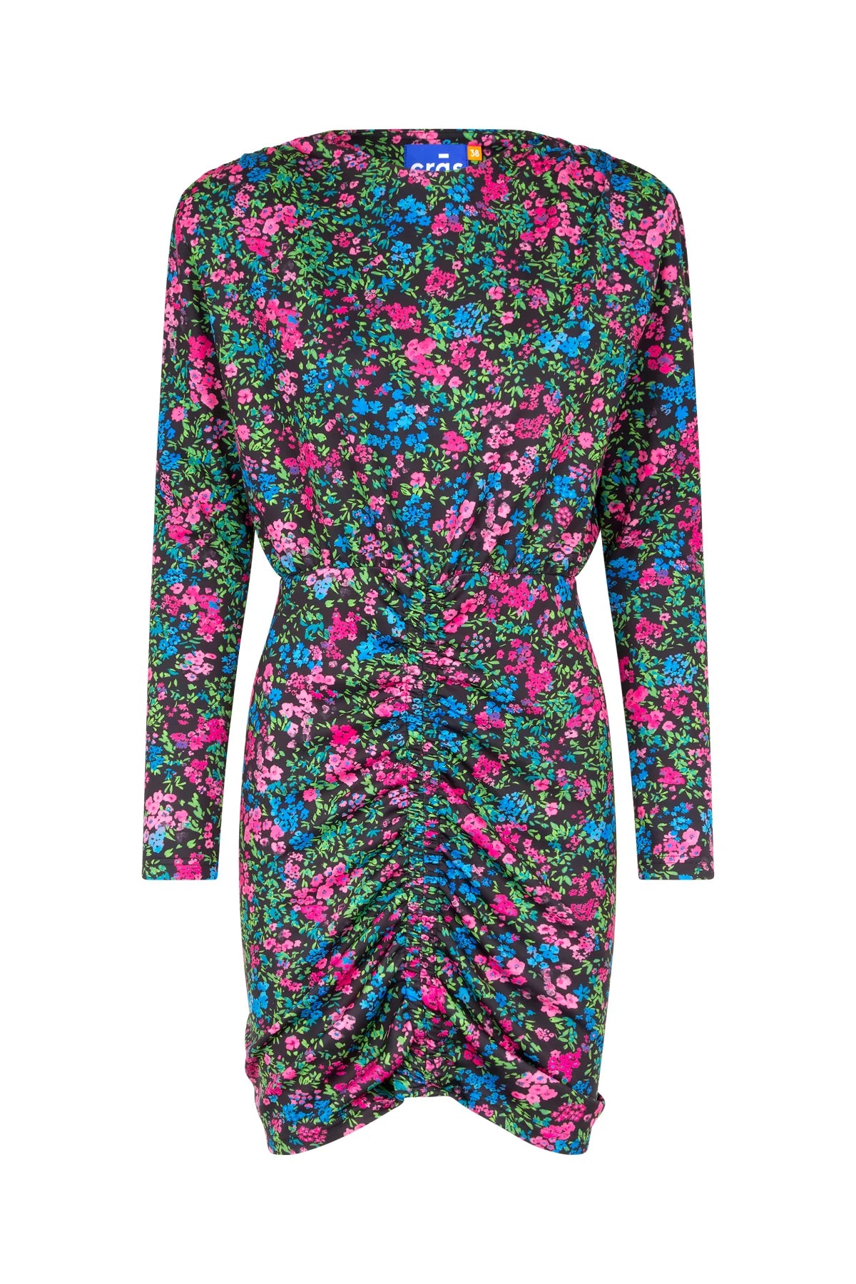 Cool dress with long sleeves, elastic waistband and gatherings at the bottom part for a flattering fit.