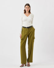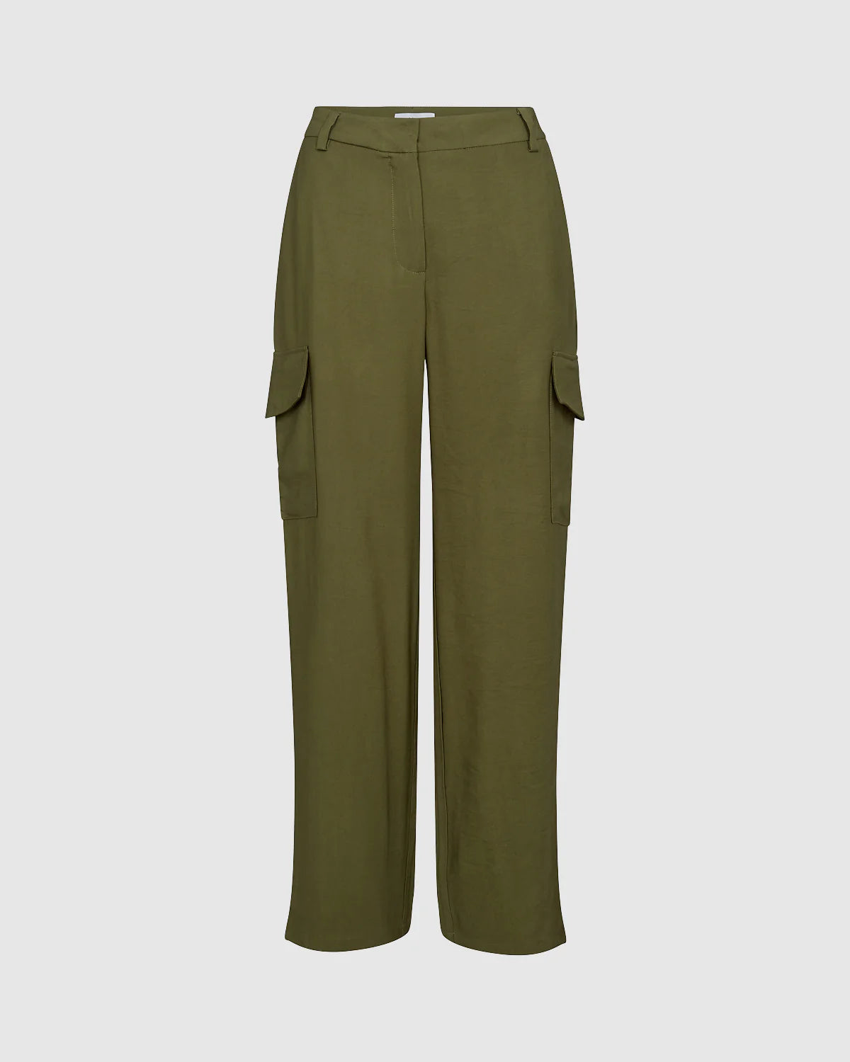 A pair of simple cargo-inspired pants crafted from polyester lenzing ecovero viscose. The pants have a casual fit and feature classic pant details and two patch pockets.