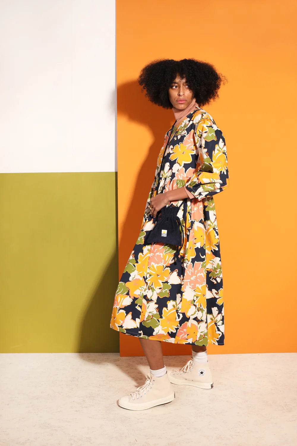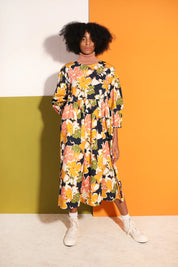 Full-length smock dress with a relaxed fit and gathering throughout for a voluminous silhouette. In our limited Autumn Lyon Floral print.