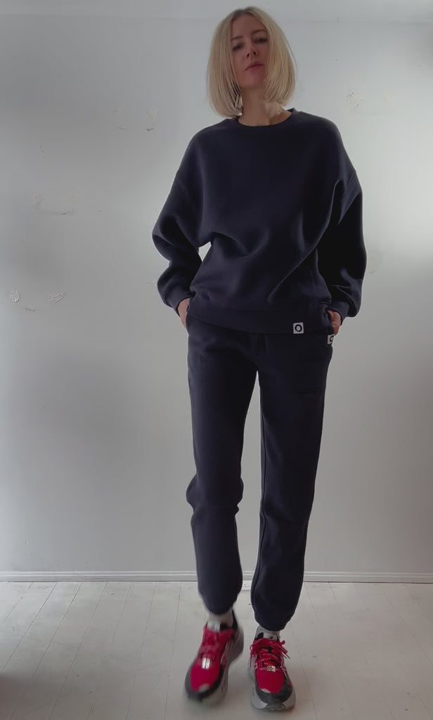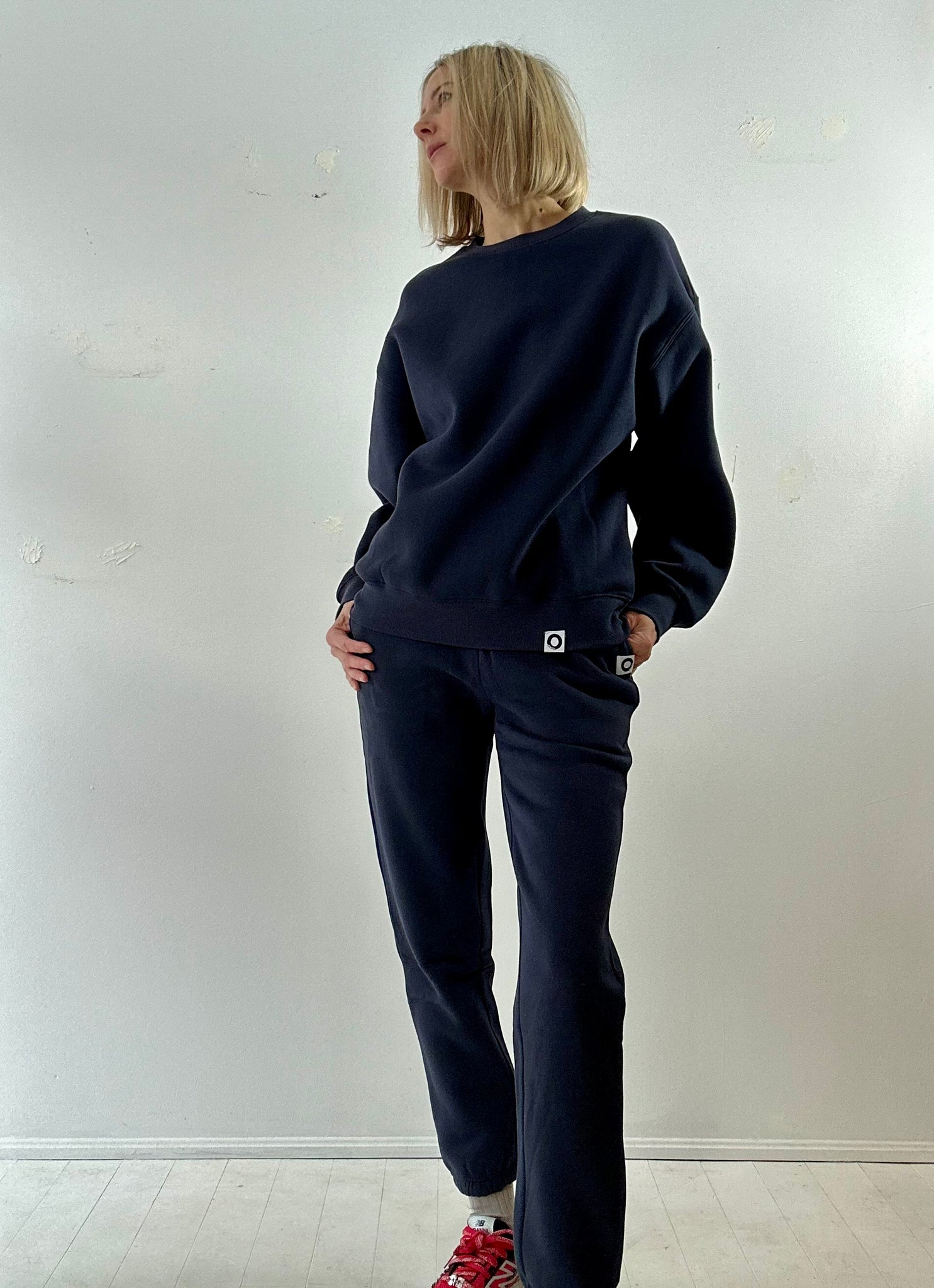 The 'good enough' crew has a wide bat like sleeve and a slightly tapered waist. definitely an oversized fit to it.