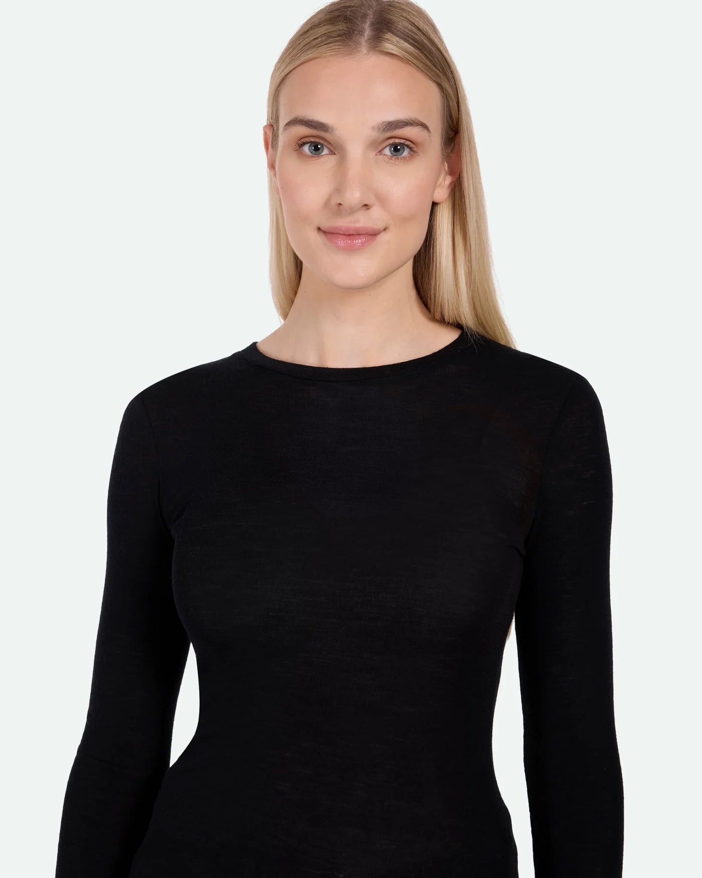 Natashas is a long sleeved jumper made from 100% merino wool for a soft and comfortable quality. The jumper has a tight fit and is designed with a round neck.