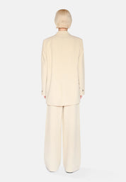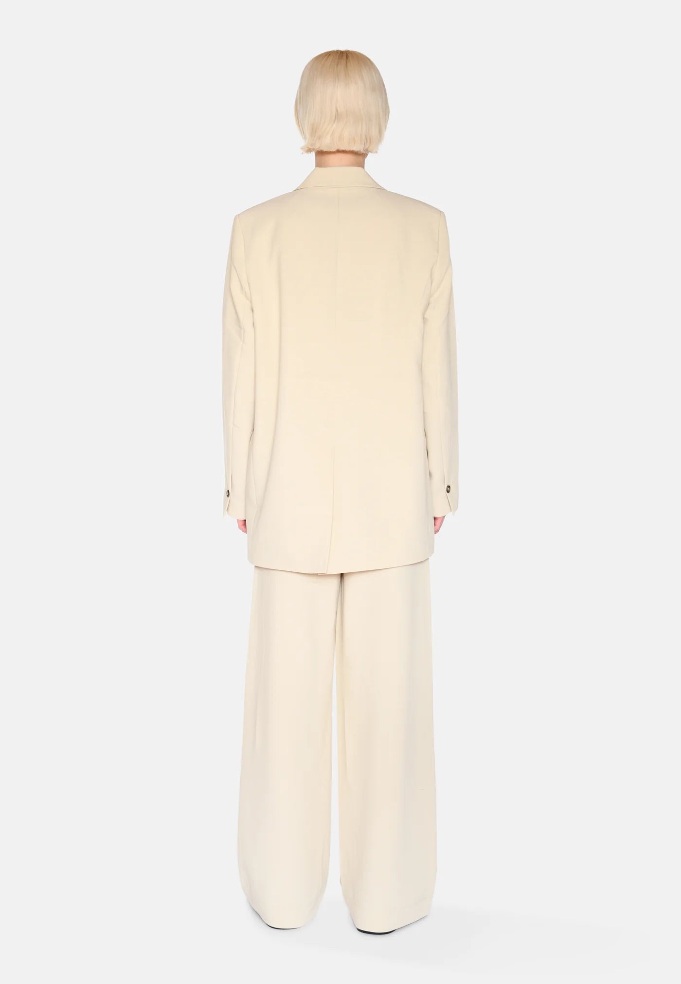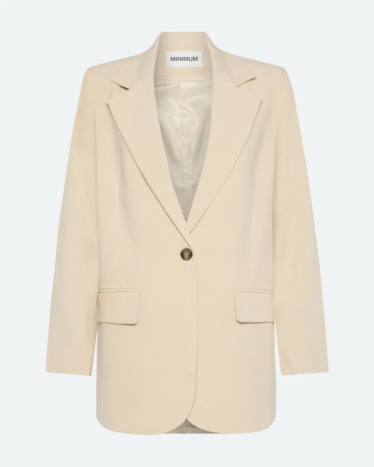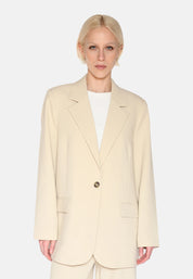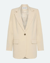 A modern classic blazer with tailored look and is crafted from 79% recycle polyester, 17% viscose and 4% elastane. The blazer has a slightly oversized fit and features shoulder pads and a minimalistic lapel collar. It is detailed with a single button, pockets and a slit at back.