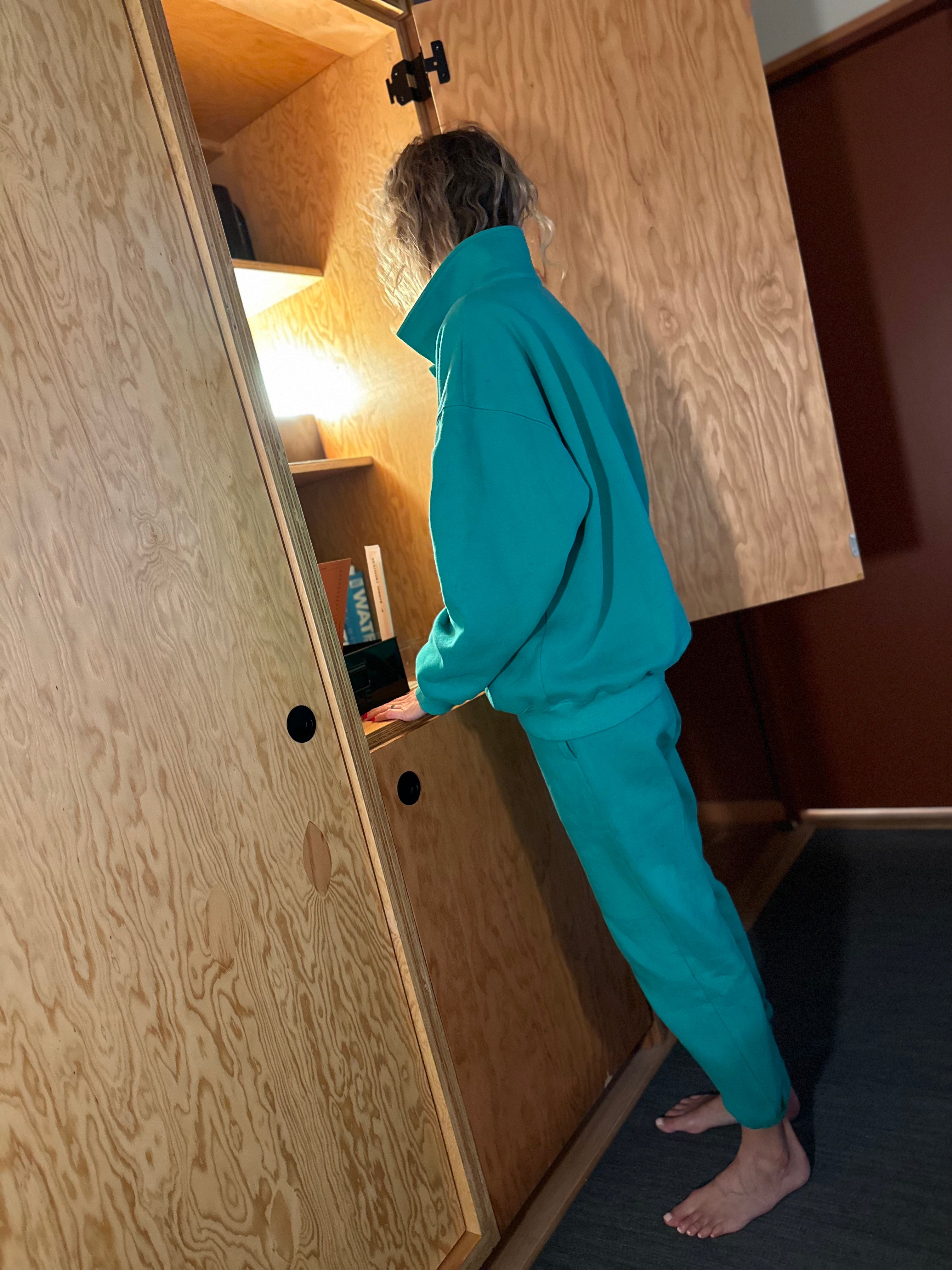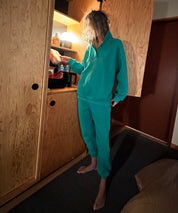 the coziest, plushest sweatpant you will ever need! this is a classic slim leg sweatpant with a high rise, elastic ankles, elastic and drawcord waist and side pockets.