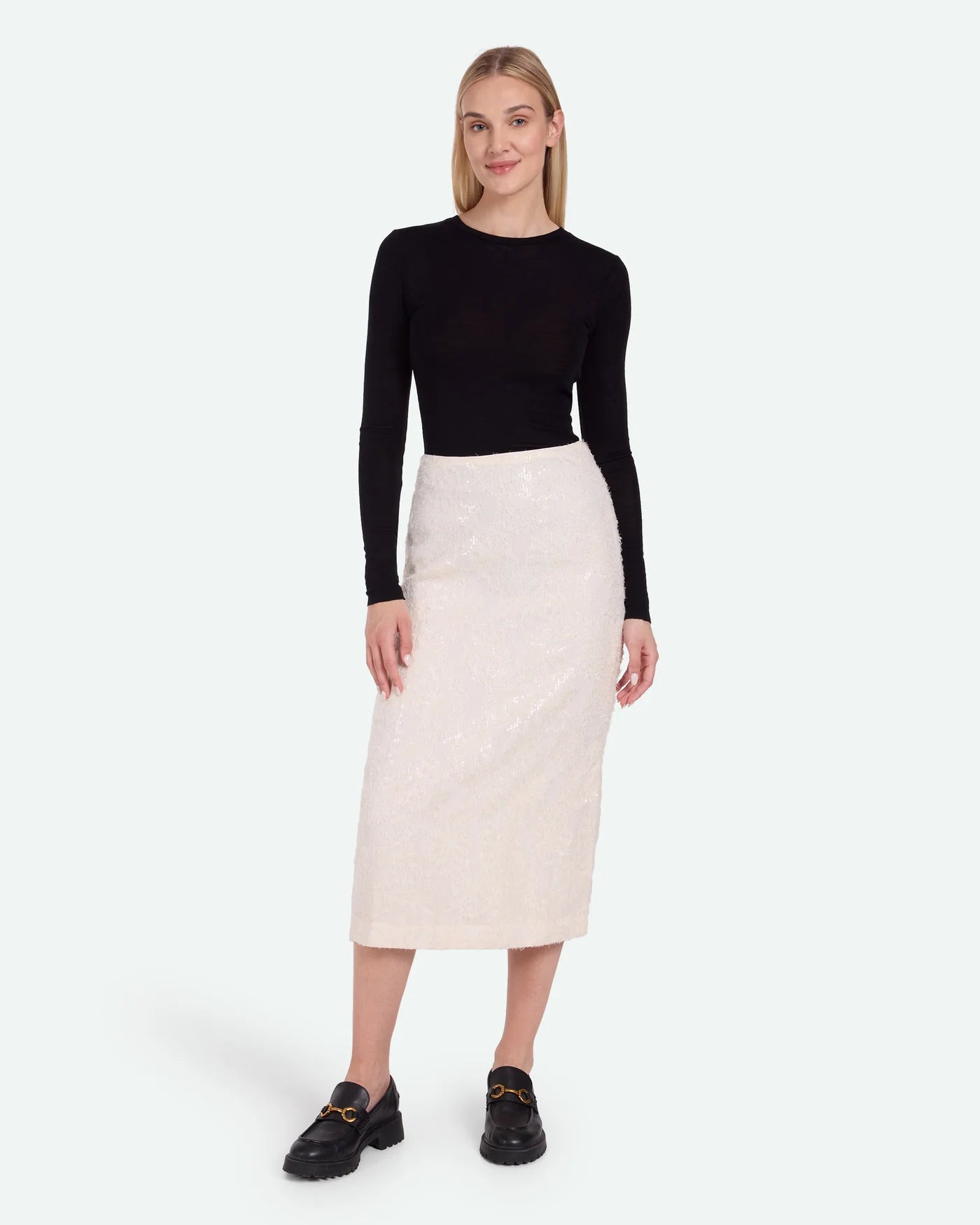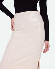 Olgas is a midi length skirt with sequins made of 100% polyester. The skirt has the regular fit and is detailed with a small slit at the side and zip closure.