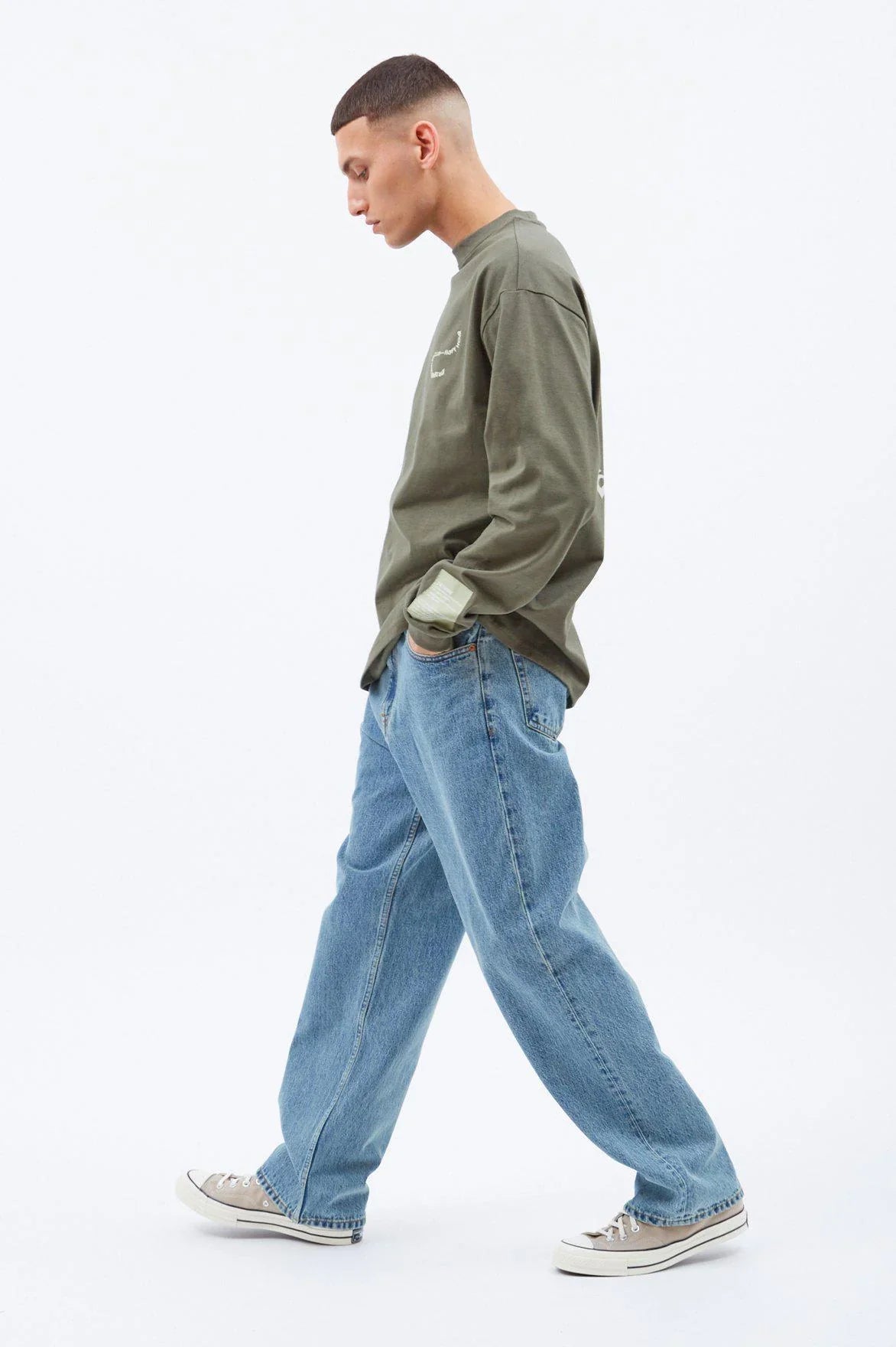 Relaxed anti-fit jeans with a dropped crotch and a 90’s inspired wide straight leg.