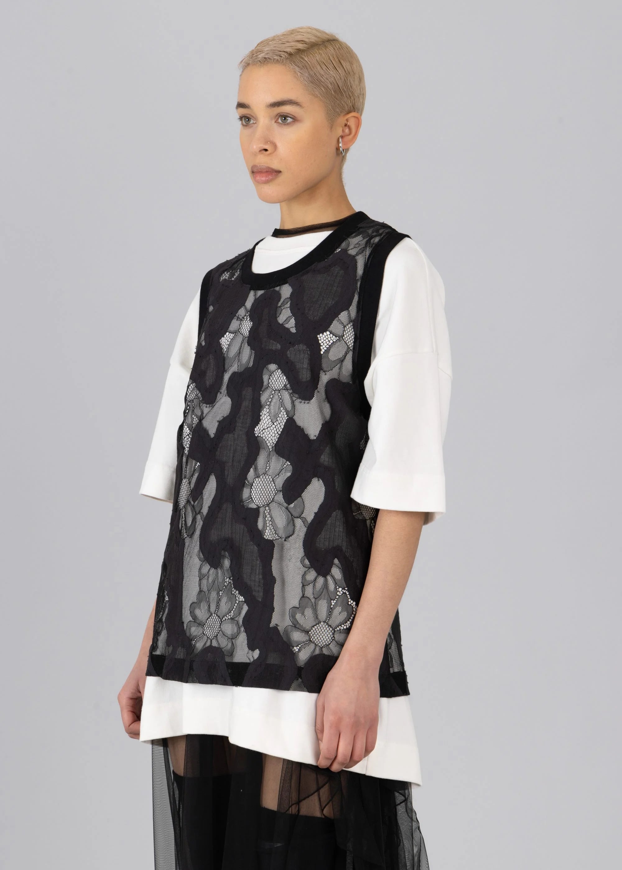 oversized sheer lace vest