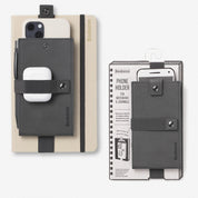 If your life is in your phone, this is all you need..and nothing you don't need! This very practical and stylish holder simply slips onto your notebook and is definitely the acceptable face of the phone for work, school, or Uni. Traveling incognito, your phone will always be on-hand...just not in hand! Oh, and you can slide your other 'can't live without' things under the elastic, and off you go. Someone calling? Unclip, pull up the strap, and tah dah! Your phone pops up ready to answer (or not)!