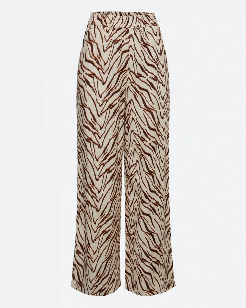 This season, zebra prints are making a statement, and our womenswear design team taps into this trend with the Rosies pants. Crafted from a light, breathable linen-viscose blend, they offer comfort with a relaxed fit, wide leg, and elastic waist. Discreet side pockets add practicality to the design.
