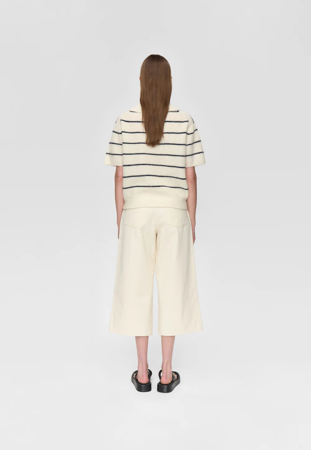 Loose fit mohair mix jumper with polo collar and button placket at front. Featuring bold stripes for a contemporary feel. Designed with short sleeves for a transeasonal feel.