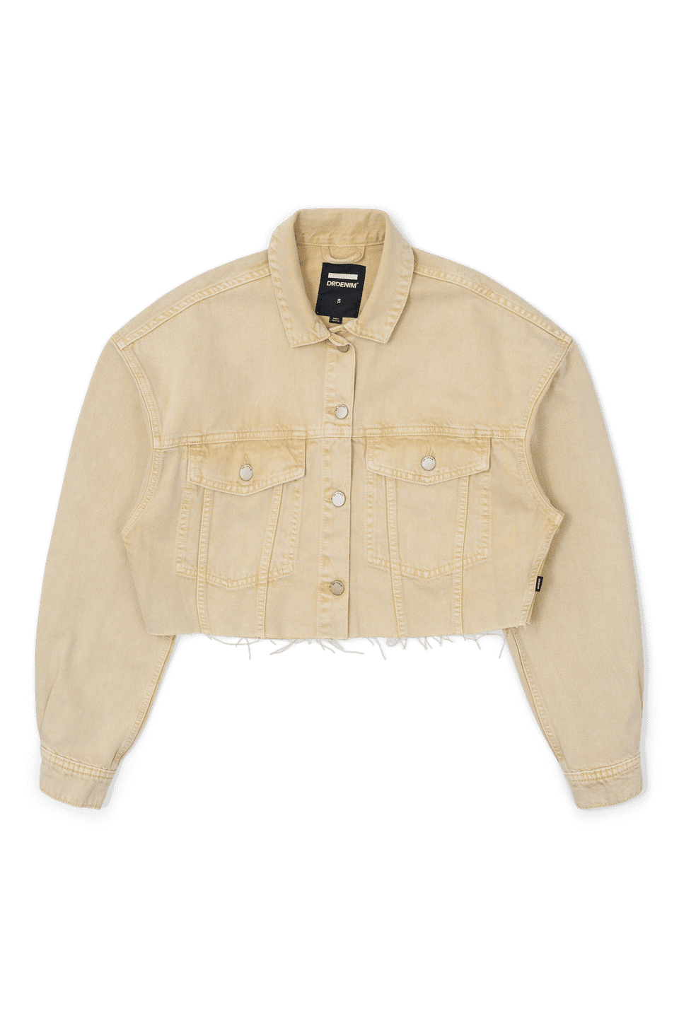 Oversized boxy fit denim jacket, dropped shoulders and raw hem