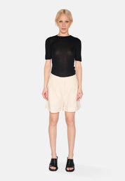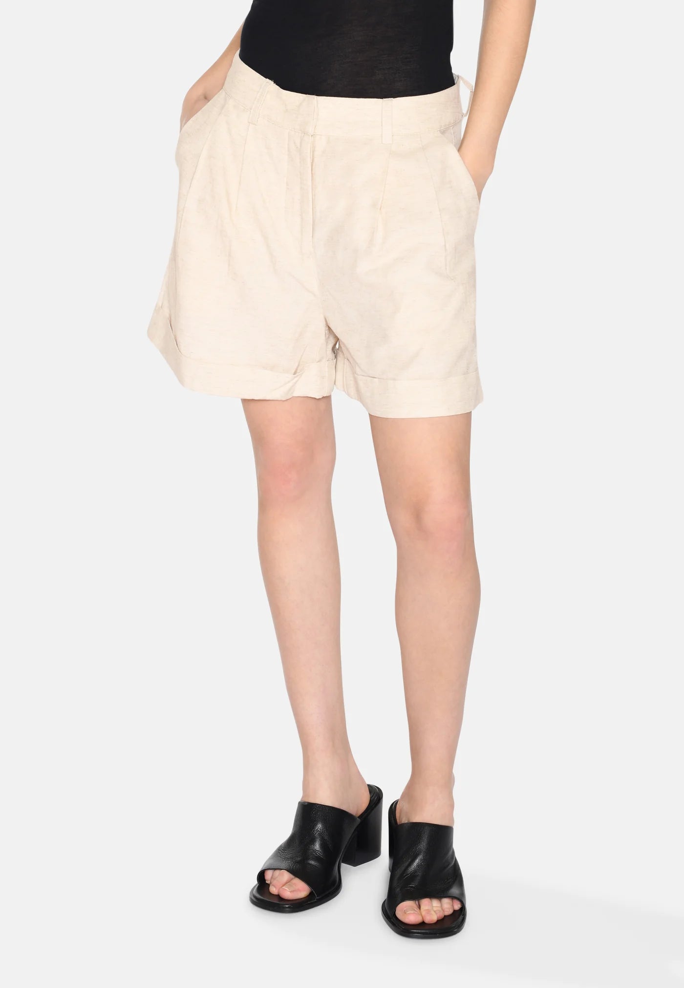 The shorts combine casual elegance with practical details, making them ideal for both everyday and special occasions. The pleated design on the legs adds a modern edge, while the material ensures a light and comfortable fit.