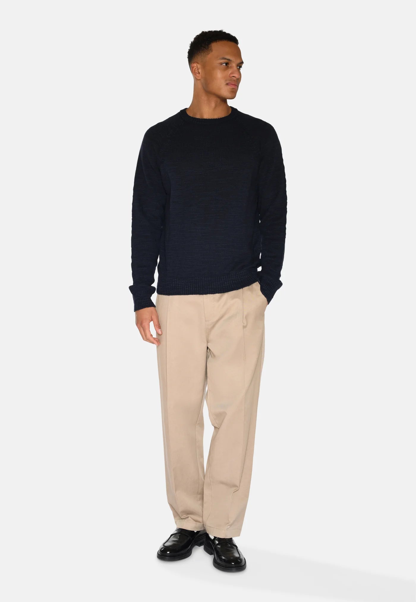 The trousers are designed with fine pleats at the front, adding a classic and sophisticated detail. The elastic at the waist ensures a flexible and comfortable fit, while the belt loops allow you to style with a belt for a more polished look. The well-thought-out balance between functionality and style makes them ideal for both casual and formal occasions.
